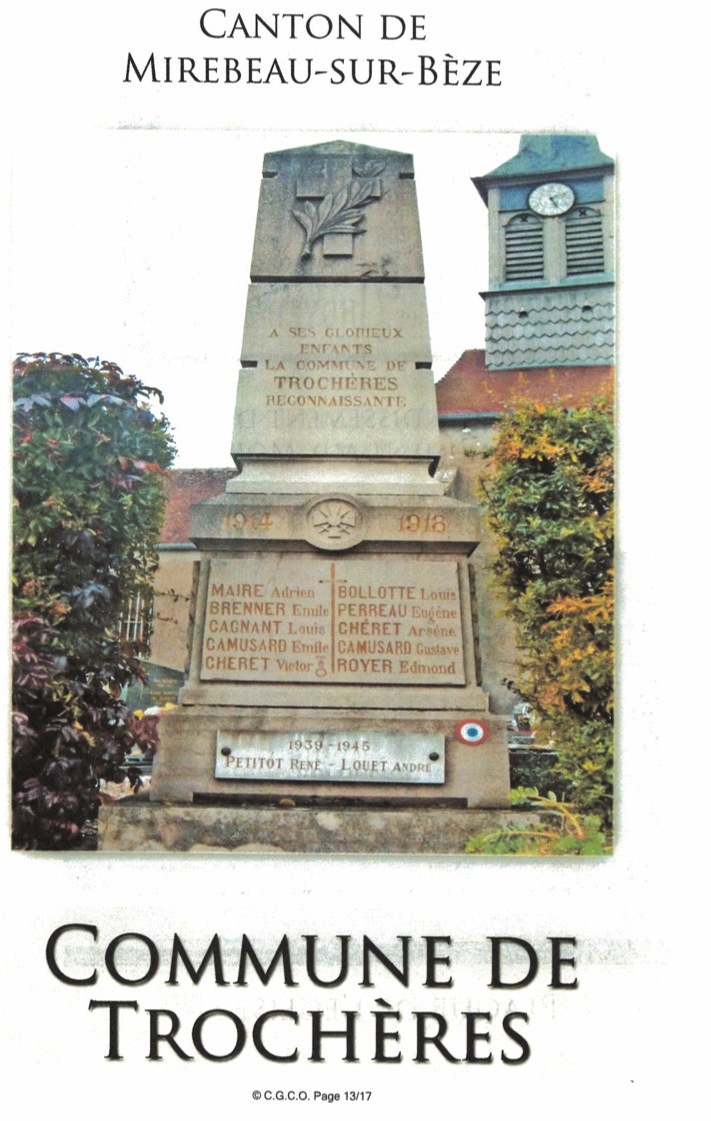 monumentauxmortsYvon Claude, président du Cercle généalogique de la Côte-d’Or et Christian Laurent, membre de cette association ont transmis à la mairie, des extraits de leurs travaux sur les personnes disparues pendant la Grande Guerre 1914-1918 dans le département.