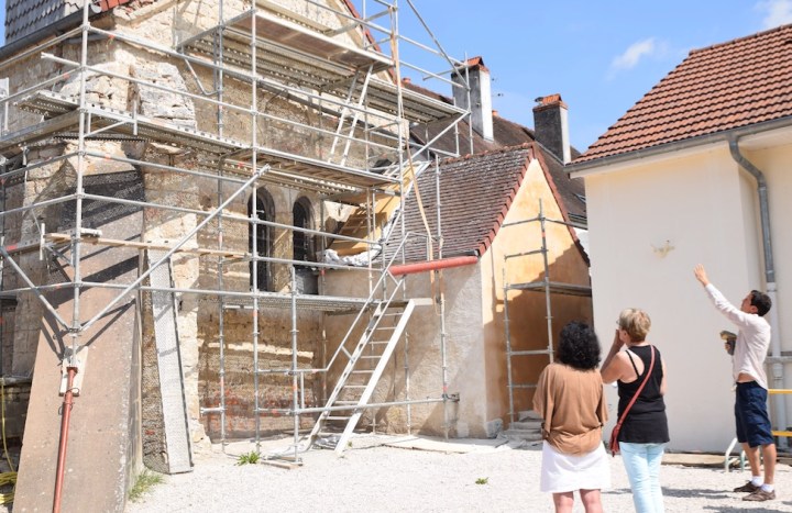 Samedi 24 juin au matin, les donateurs du projet de restauration de l’église ont été conviés à visiter le chantier avec Paul Guerra, dirigeant de l’entreprise familiale Guerra à Dijon, que son père Jean-Philippe, également présent à la visite, lui a transmise il y a quelques années.