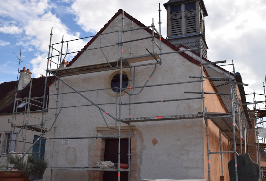 Le conseil municipal du 26 septembre a validé la palette de couleurs de l’enduit à la chaux de l’église : un rosé pour les façades et un blanc cassé pour souligner les ouvertures et encadrements.
