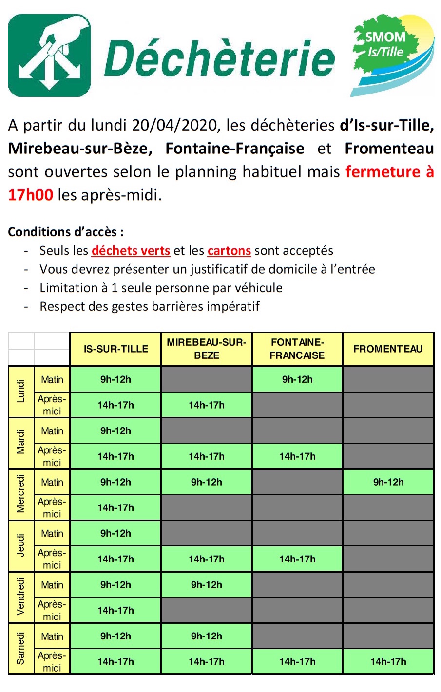Réouverture des déchetteries