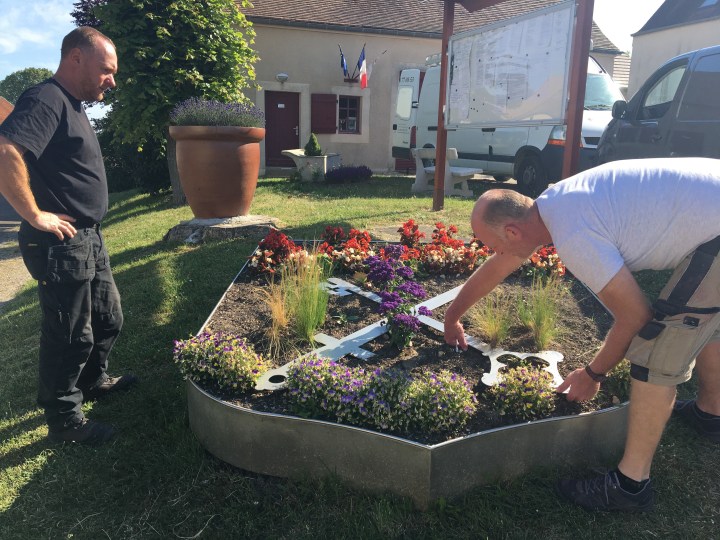 Installation de la clé et de l’épée par .. et David Dos Res, l’employé communal.