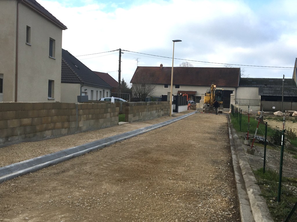 L’entreprise Bongarzone poursuit les travaux Chemin des Voissières et Impasse de la rue de Belleneuve jusqu’au mercredi 16 décembre. Ce jour-là seront réalisés les enrobés.