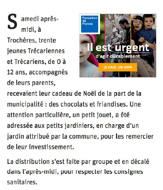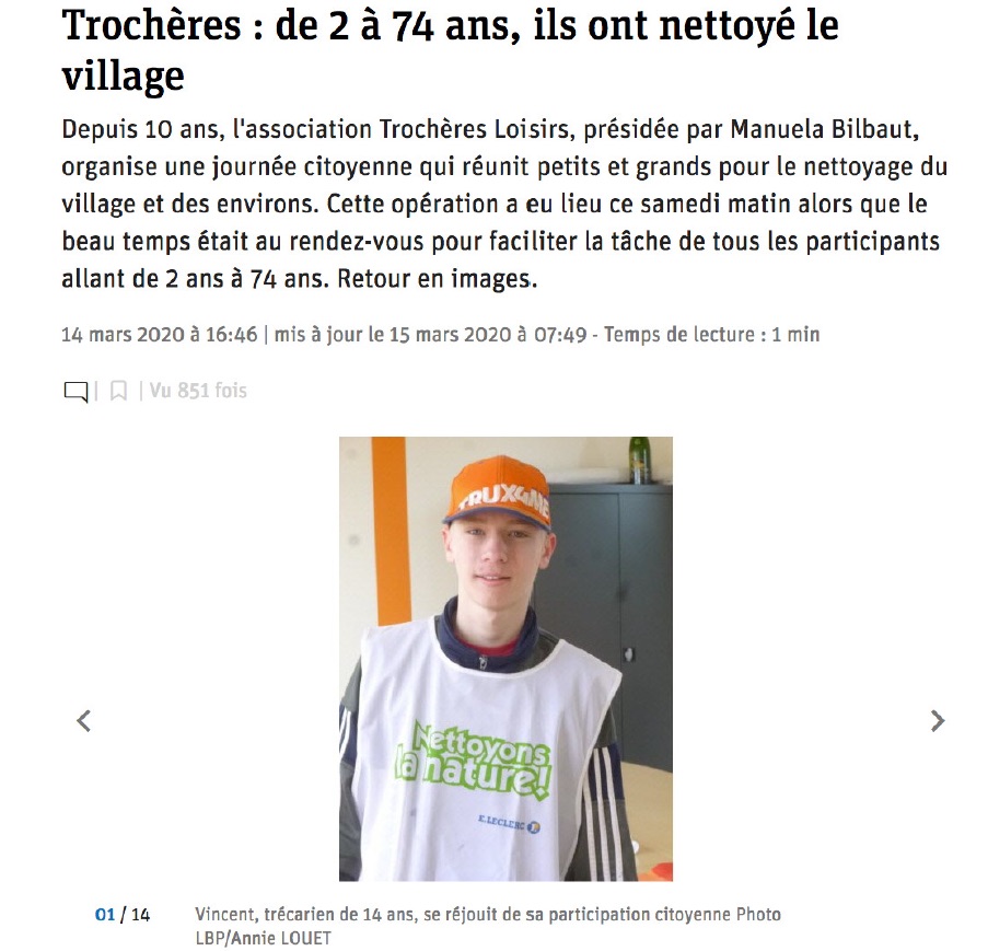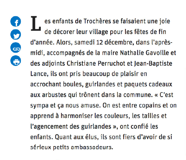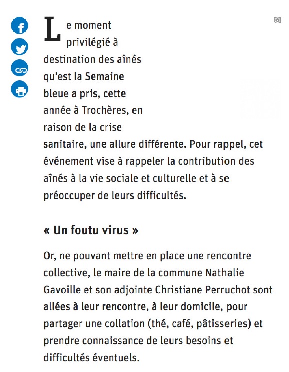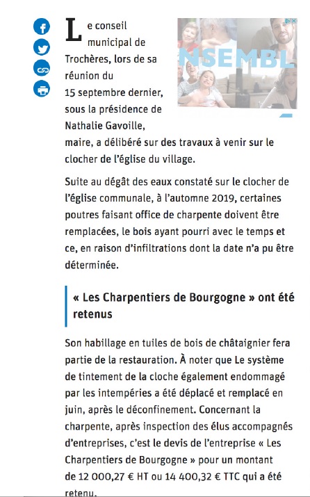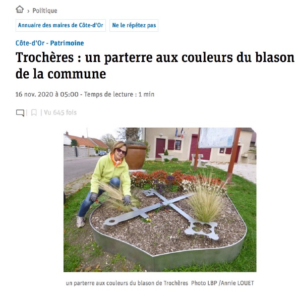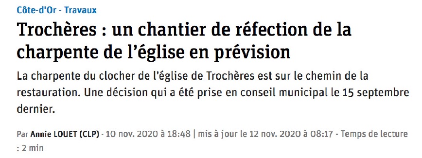 Trochères a fait l’objet de douzaines d’articles en 2020, dans le quotidien local Le Bien Public. Le conseil municipal remercie Annie Louet pour l’attention portée à notre village.