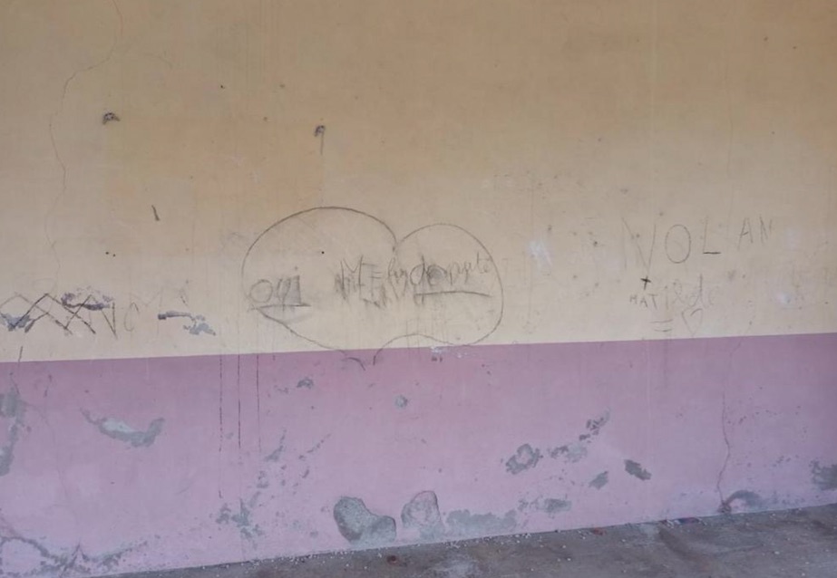 Le préau, on vous l’accorde, n’est pas très esthétique. Ce n’est pas une raison pour le dégrader plus qu’il ne l’est avec ces tags réalisés pendant le week-end de la Pentecôte.