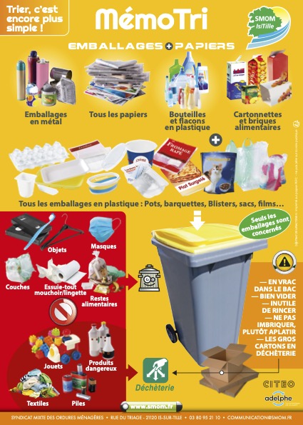 Bac jaune (déchets recyclables) tous les 15 jours. Prochain passage vendredi 13 janvier.