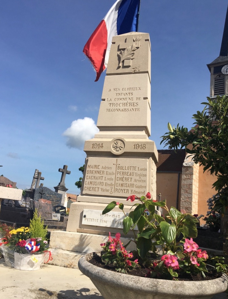 Mme le maire de Trochères et l’ensemble du conseil municipal invitent la population à la cérémonie de commémoration de l’armistice du 11 novembre 1918 qui a mis fin à quatre années de combats de la Première Guerre mondiale (1914-1918).