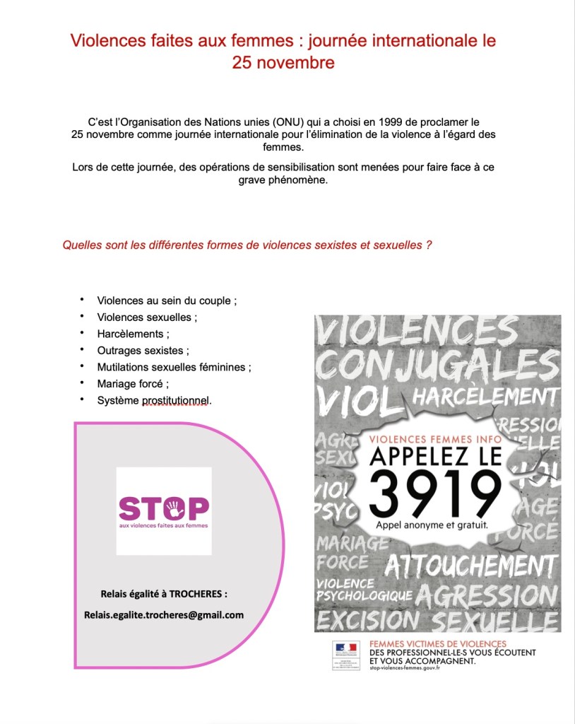 Informations pratiques 25 novembre : journée internationale contre la violence faite aux femmes Je partage sur : Cliquer pour imprimer(ouvre dans une nouvelle fenêtre) Imprimer Cliquer pour envoyer un lien par e-mail à un ami(ouvre dans une nouvelle fenêtre) E-mail Cliquez pour partager sur Facebook(ouvre dans une nouvelle fenêtre) Facebook J’aime chargement… Similaire