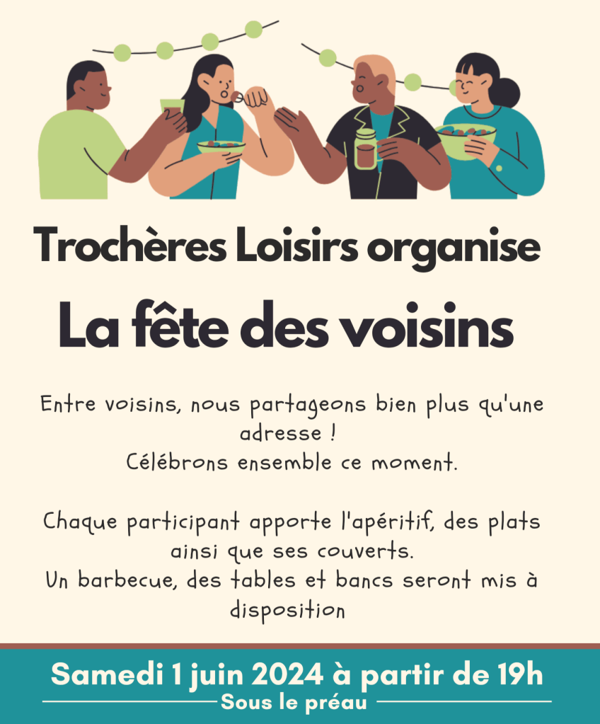 Trochères Loisirs organise cette année encore la Fête des voisins, un moment convivial de partage,