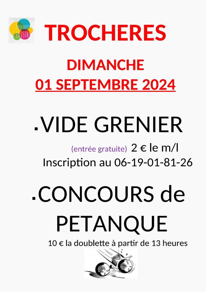 Réservez votre dimanche 1er septembre pour acheter ou vendre au vide-greniers de Trochères