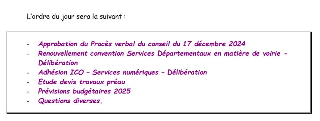 Le conseil municipal se réunira jeudi 13 mars à 20 heures en mairie, suite à l’absence de quorum à la convocation du 6 mars.