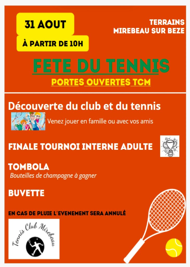 Agenda Fête du tennis le 31 août à Mirebeau Dimanche 31 août, le Club de Tennis se propose de venir découvrir ses activités. Je partage sur : Cliquer pour imprimer(ouvre dans une nouvelle fenêtre) Imprimer Cliquer pour envoyer un lien par e-mail à un ami(ouvre dans une nouvelle fenêtre) E-mail Cliquez pour partager sur Facebook(ouvre dans une nouvelle fenêtre) Facebook J’aime chargement… Similaire