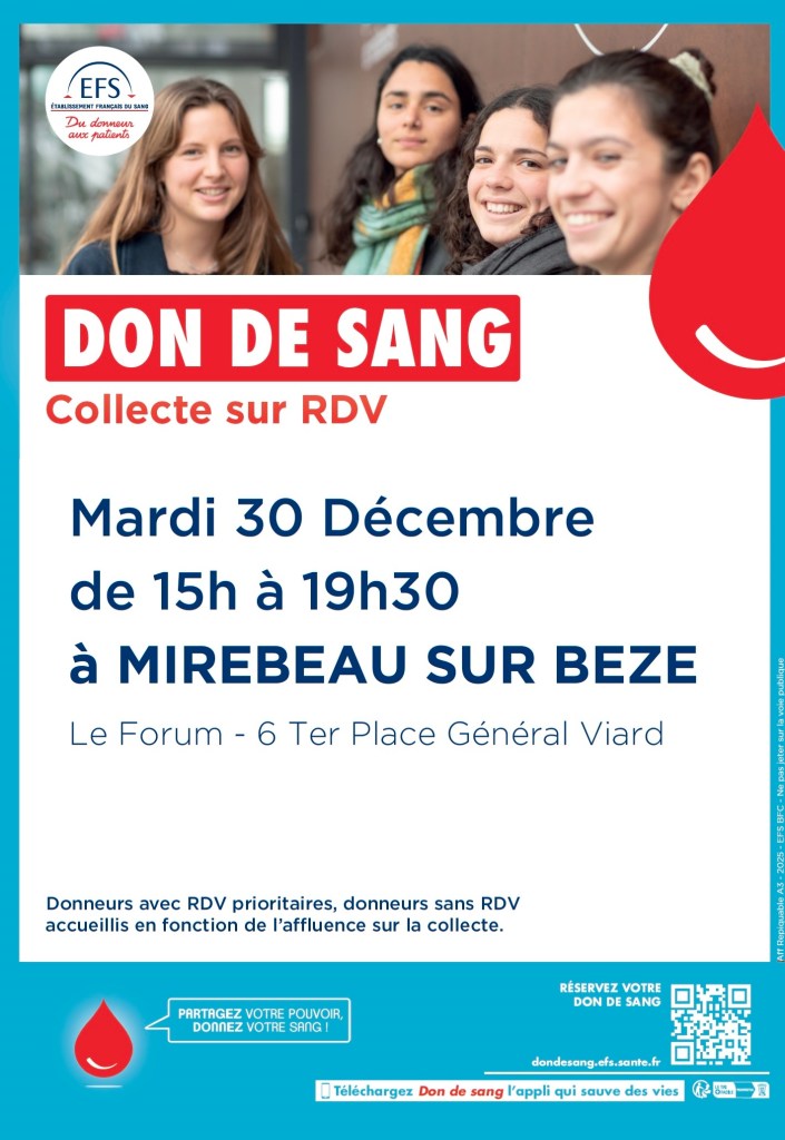 Mardi 30 décembre 2025 de 15h à 19h30 au Forum à Mirebeau.